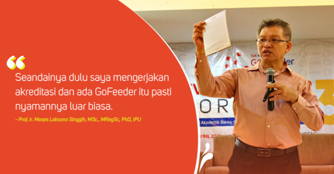 SEVIMA.CO.ID – Surabaya, Dalam acara Workshop Gofeeder v.3 yang diadakan pada tanggal 19 April 2018 kamarin di Hotel Santika Premiere Gubeng, SEVIMA mengundang Prof. Moses Laksono Singgih, beliau adalah asesor BAN-PT untuk progam studi AIPT dan Ketua Pusat Jaminan Mutu ITS 2009-2013. Alamat website beliau bisa diakses di www.moseslsinggih.org.