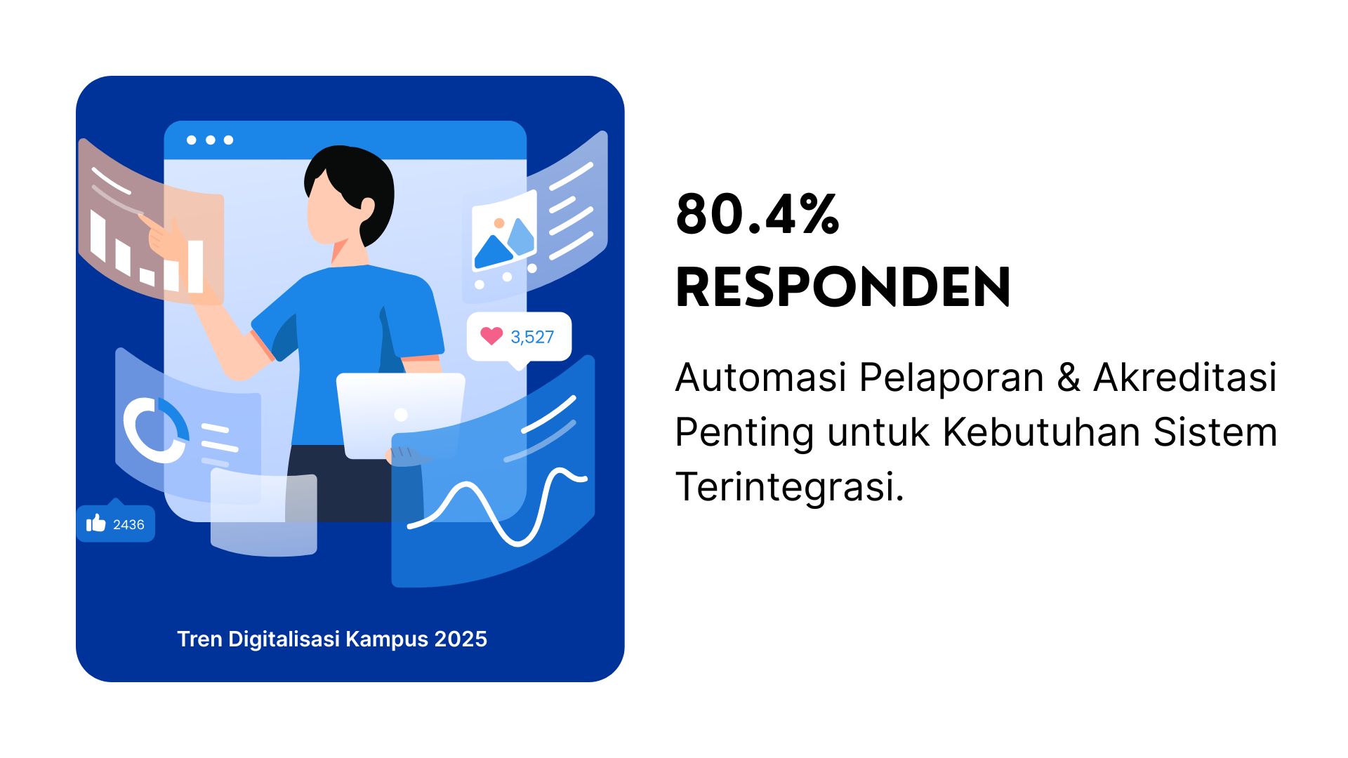 Dengan 80,4% kampus menyatakan bahwa automasi pelaporan dan akreditasi adalah kebutuhan mendesak, transformasi ini bukan lagi sekadar wacana, melainkan realitas yang terus berlangsung. Metode manual yang membebani SDM dan memperlambat proses pelaporan sudah tak lagi relevan.