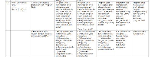 Sebagai contoh dalam matrik penilaian akreditasi pada LAM Teknik untuk program sarjana terapan, kesesuaian profil lulusan dengan capaian pembelajaran (CPL) menganduk syarat mutlak dalam implementasi OBE di perguruan tinggi.