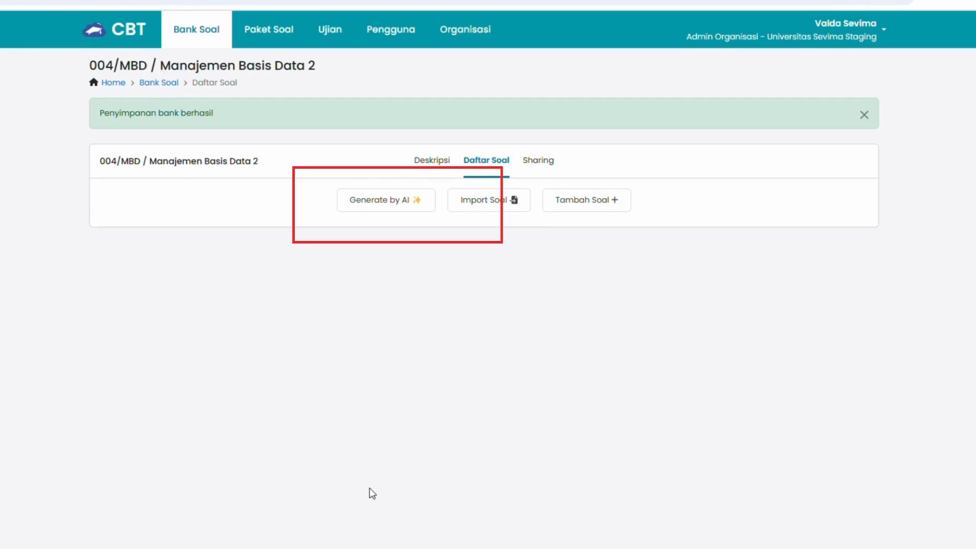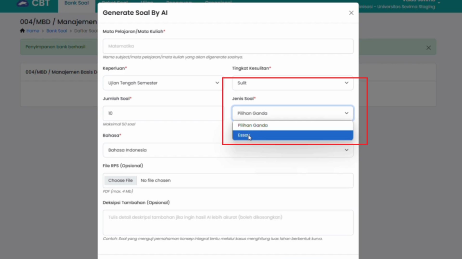 Generate soal menggunakan AI di Modul CBT SEVIMA Platform