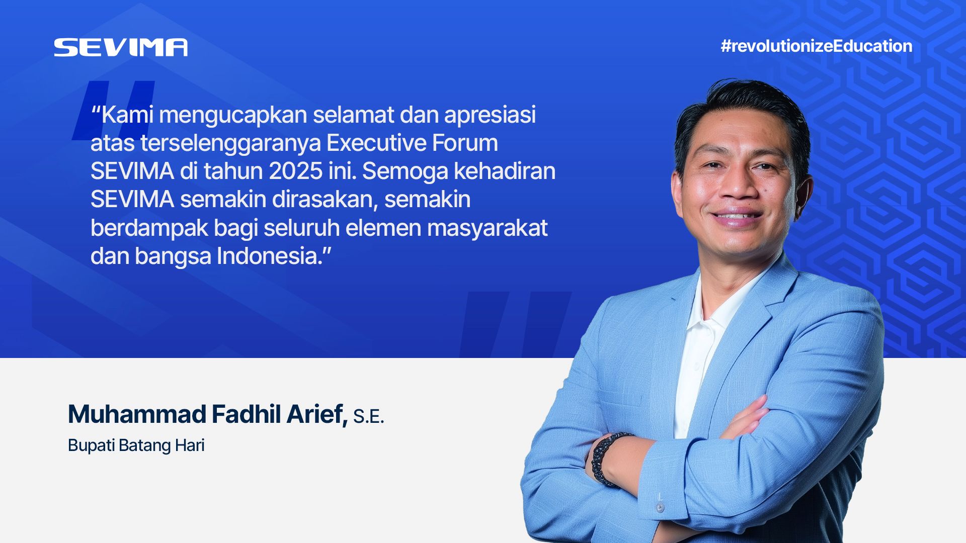 “Kami mengucapkan selamat dan apresiasi atas terselenggaranya Executive Forum SEVIMA di tahun 2025 ini. Semoga kehadiran SEVIMA semakin dirasakan, semakin berdampak bagi seluruh elemen masyarakat dan bangsa Indonesia,” kata Muhammad Fadhil dalam sambutan yang disampaikan secara daring.