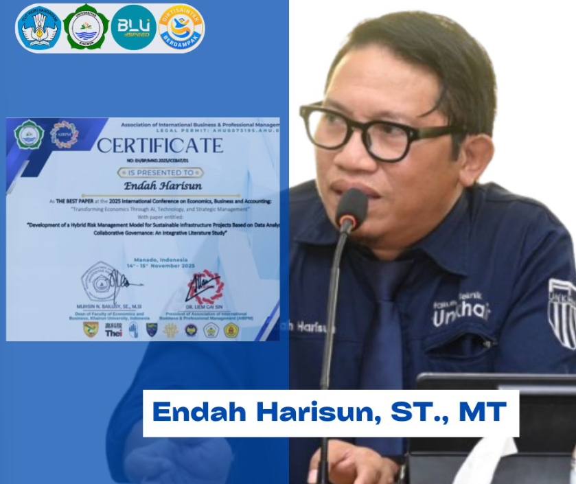 Endah juga tercatat sebagai mahasiswa S3 Unkhair, menyandang penghargaan tertinggi melalui paper berjudul; “Development of a Hybrid Risk Management Model for Sustainable Infrastructure Projects Based on Data Analysis and Collaborative Governance: An Integrative Literature Study.”