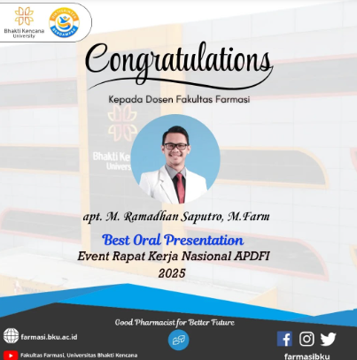 Prestasi ini menjadi kebanggaan tersendiri bagi Fakultas Farmasi BKU yang secara konsisten mengusung visi “Good Pharmacist for Better Future”, sebagaimana tercantum dalam elemen visual poster. Tagline tersebut menggambarkan arah pengembangan institusi untuk mencetak tenaga kefarmasian yang kompeten, beretika, serta mampu berkontribusi bagi masyarakat. Keberhasilan salah satu dosennya dalam forum nasional semakin memperkuat posisi Fakultas Farmasi BKU sebagai institusi yang menjunjung tinggi kualitas akademik.