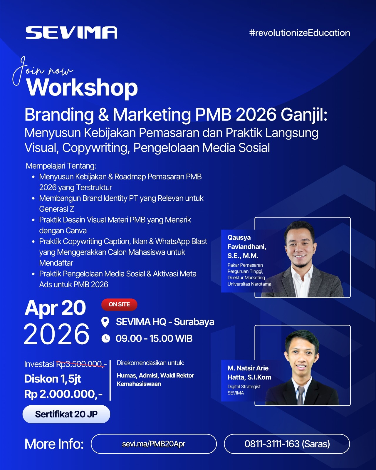 Workshop Branding dan Marketing PMB 2026 Ganjil: Menyusun Kebijakan Pemasaran dan Praktik Langsung Visual, Copywriting, Pengelolaan Media Sosial
