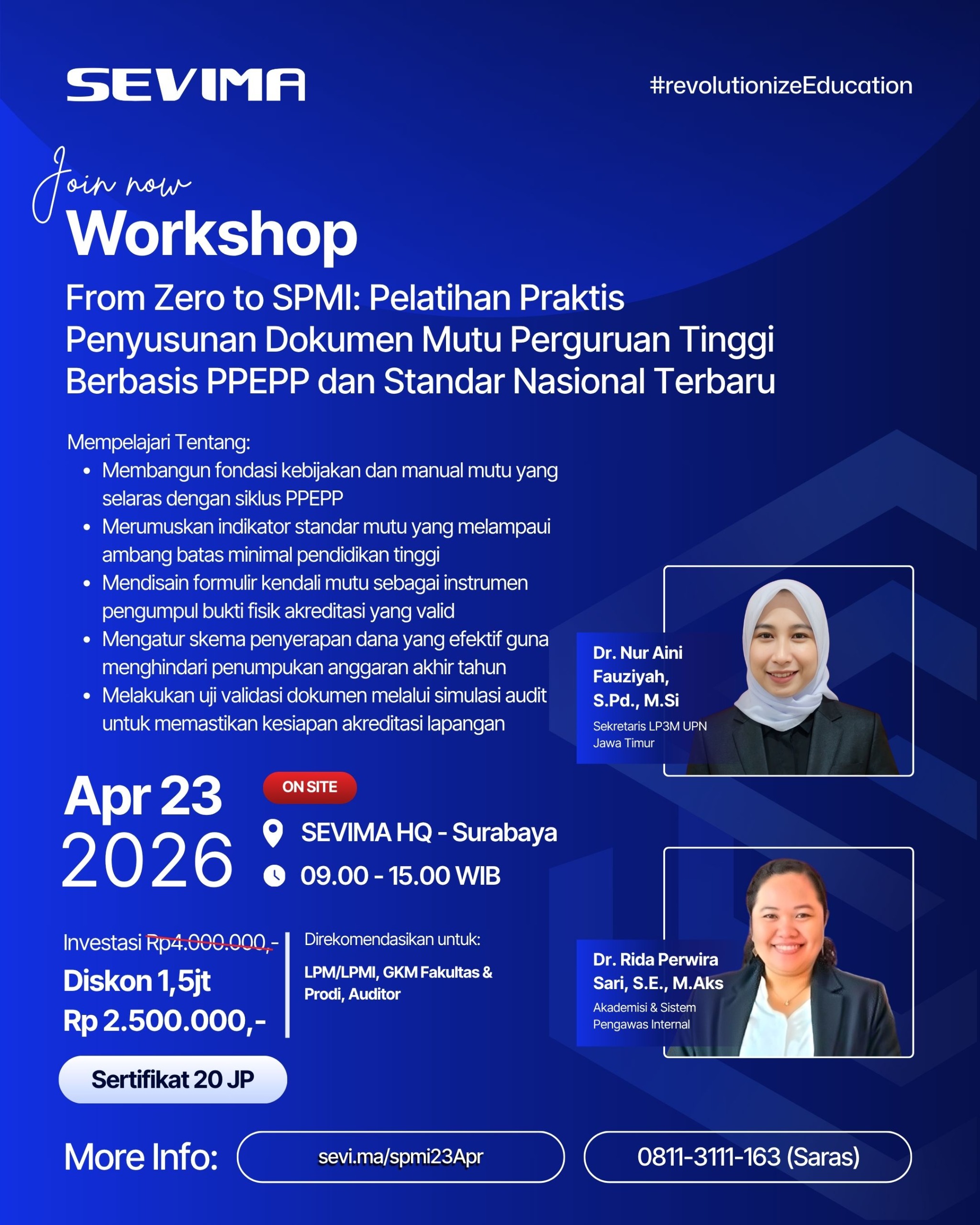 Workshop From Zero to SPMI: Pelatihan Praktis Penyusunan Dokumen Mutu Perguruan Tinggi Berbasis PPEPP dan Standar Nasional Terbaru