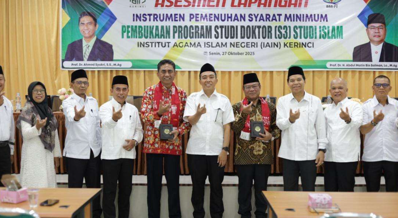 SEVIMA.COM – Institut Agama Islam Negeri (IAIN) Kerinci menggelar asesmen lapangan Instrumen Pemenuhan Syarat Minimum (IPSM) untuk Program Studi Doktor (S3) Studi Islam, Senin (27/10/2025). Program ini akan menjadi pendidikan doktor pertama di Kabupaten Kerinci dan Kota Sungai Penuh.