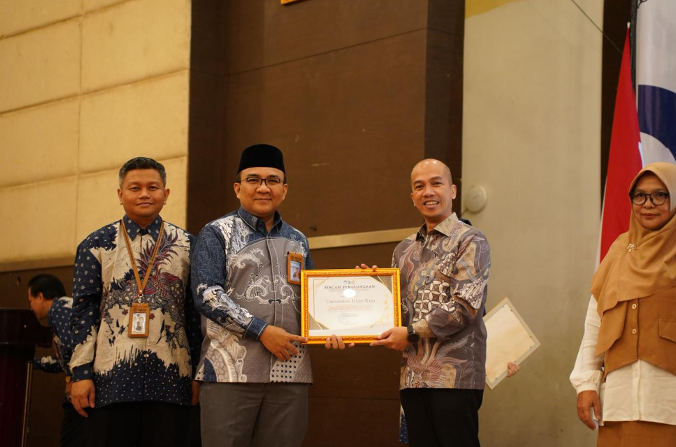 Piagam penghargaan diterima langsung oleh Rektor UIR Assoc. Prof. Dr. Admiral, S.H.,M.H dari Kepala LLDIKTI Wilayah XVII Dr. H. Nopriadi, S.K.M.,M.Kes dalam kegiatan Rapat Kerja Nasional (RAKER) LLDIKTI Wilayah XVII pada Rabu, (29/10/2025) di Grand Central Hotel Pekanbaru.