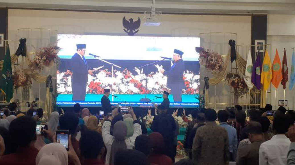 Prosesi pelantikan dan serah terima jabatan berlangsung di Aula Gedung B Universitas Muhammadiyah Kupang, Rabu 22 Oktober 2025.