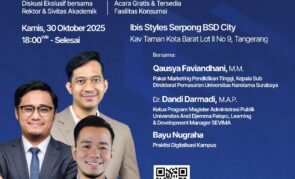 Acara yang berlangsung gratis dan didukung fasilitas konsumsi ini digelar pada Kamis, 30 Oktober 2025 mulai pukul 18.00 WIB hingga selesai, bertempat di Ibis Styles Serpong BSD City, Kav Taman Kota Barat Lot II No 9, Tangerang. Antusiasme peserta terasa tinggi sejak awal rangkaian kegiatan, dengan ribuan pendaftar dari berbagai institusi pendidikan yang mengikuti informasi, materi, dan pembahasan yang disajikan, serta kehadiran perwakilan pimpinan kampus yang memanfaatkan momen ini untuk bertukar insight secara langsung.