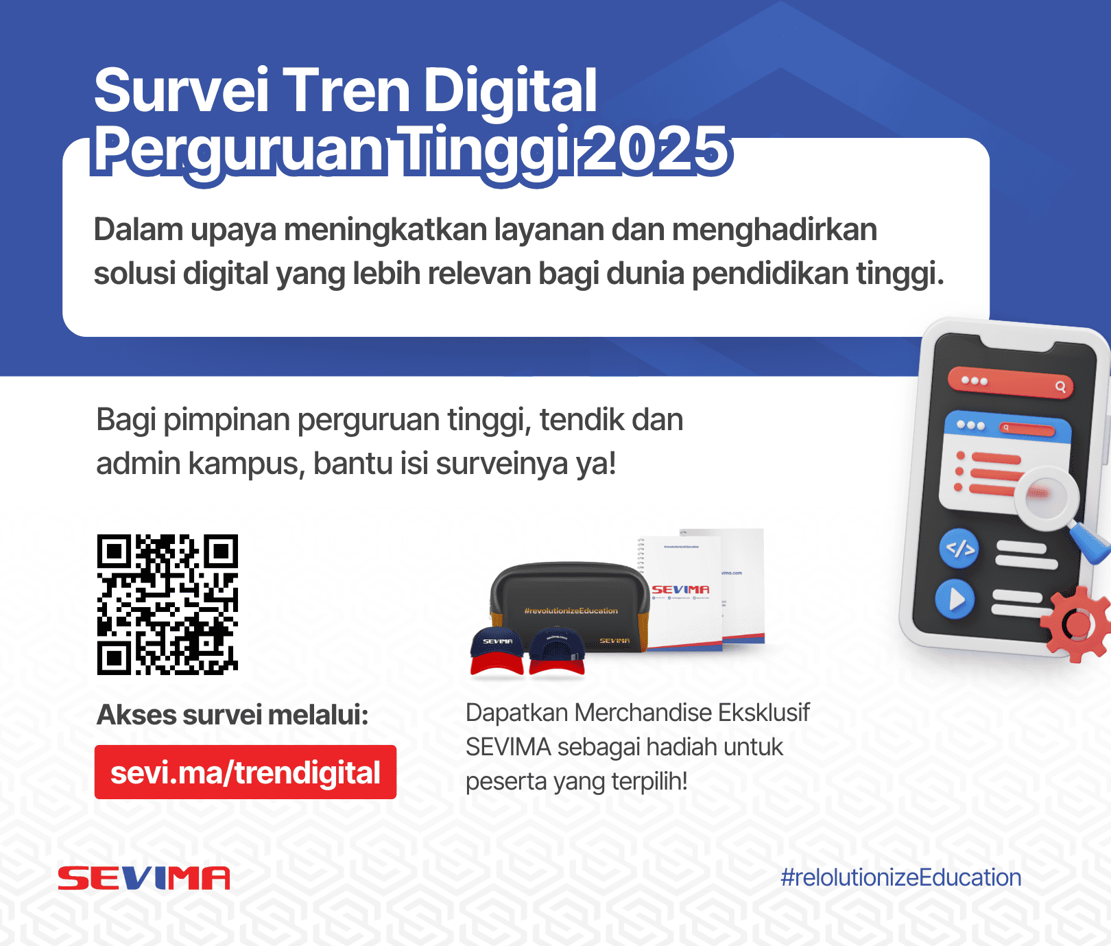 SEVIMA merupakan perusahaan Edutech (education technology) yang telah berkomitmen sejak tahun 2004 dalam menyelesaikan kendala kerumitan administrasi akademik di pendidikan tinggi (Universitas, Sekolah Tinggi, Institut, Politeknik, Akademi, dll.) dengan 99% keberhasilan implementasi melalui SEVIMA Platform, segera jadwalkan konsultasi di: Kontak Kami
