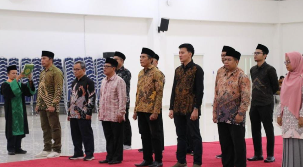 SEVIMA.COM – Universitas Islam Negeri (UIN) Imam Bonjol Padang kembali melaksanakan pelantikan dan pengambilan sumpah jabatan bagi pejabat baru yang akan mengemban amanah kepemimpinan pada periode 2025–2029. Acara berlangsung khidmat dan dihadiri oleh Rektor, para Wakil Rektor, Dekan, Kepala Pusat dan Lembaga, serta civitas akademika UIN Imam Bonjol Padang, Rabu (3/12).
