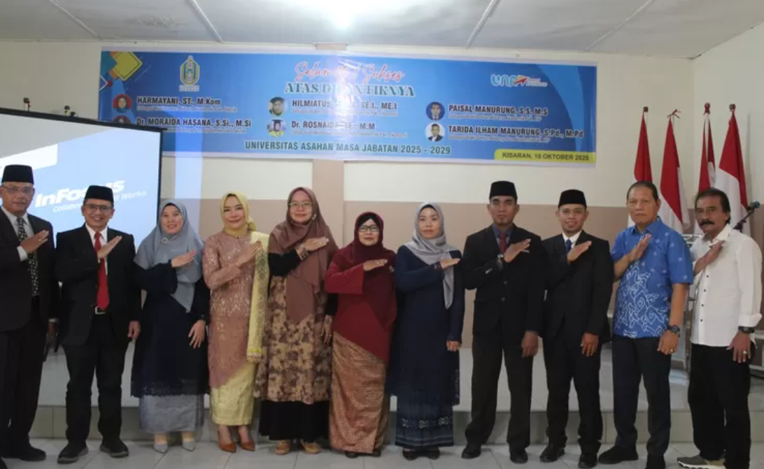 Acara pelantikan dipimpin langsung oleh Rektor Universitas Asahan, Assoc. Prof. Dr. Mangaraja Manurung, S.H., M.H., dan turut dihadiri oleh Ketua Pengurus Yayasan Universitas Asahan, Drs. Mapilindo, M.Pd, Wakil Sekretaris Yayasan Drs. Eddy Pangidoan Siregar, M.Si, Wakil Rektor Bidang Akademik Assoc. Prof. Dr. Wanayumini, S.Kom., M.Kom, Wakil Rektor Bidang Non Akademik Dr. Hadi Suriono, S.E., M.M, para dekan, dosen, ketua dan sekretaris program studi, serta sivitas akademika UNA lainnya.