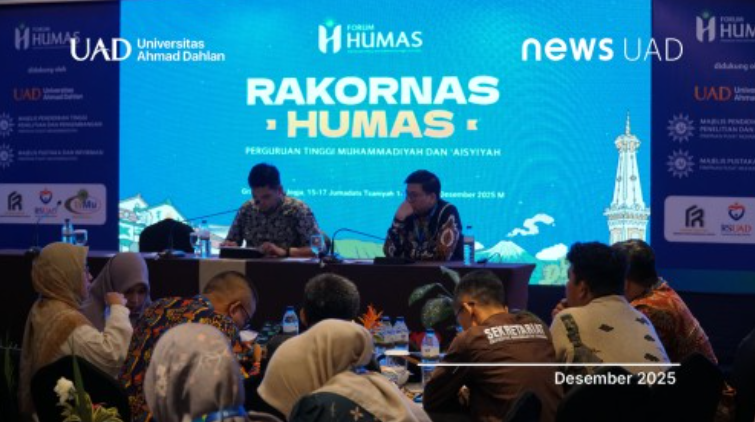 Ketua Forum Humas PTMA, Ariadi Nugraha, S.Pd., M.Pd., menjelaskan berbagai pendekatan komunikasi kelembagaan yang selama ini terbukti memberikan dampak positif bagi reputasi perguruan tinggi. Ia turut memaparkan struktur Bidang Humas dan Protokol (BHP) UAD yang terdiri atas divisi protokol, reporter, konten kreator, admin, fotografer, dan desainer. Setiap divisi diwajibkan memiliki target kinerja yang jelas agar mampu bersinergi dalam memperkuat branding UAD sekaligus meningkatkan daya tarik bagi calon mahasiswa baru.
