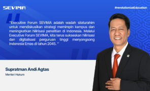 “Selamat atas terselenggaranya Executive Forum SEVIMA yang dihadiri oleh ratusan rektor, pimpinan, serta para pakar perguruan tinggi. Executive Forum SEVIMA adalah wadah silaturahim untuk mendiskusikan strategi memimpin kampus untuk menghadirkan lifelong learning atau pembelajaran sepanjang hayat,” kata Silmy Karim dalam sambutan yang disampaikan secara daring.