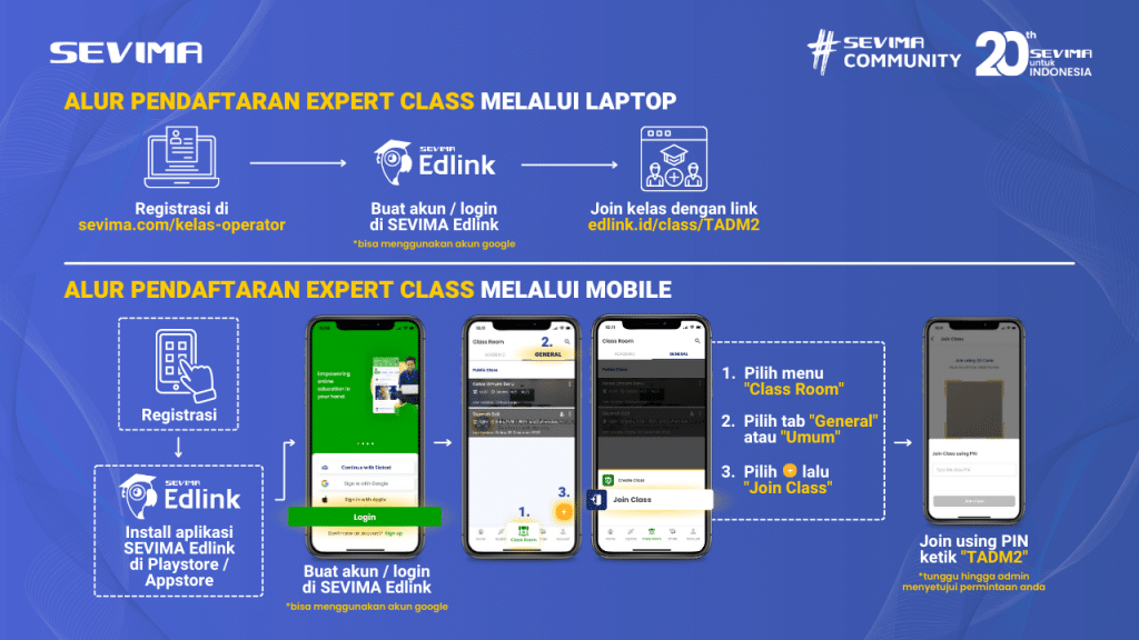 Tidak hanya mendapatkan materi, terdapat keuntungan lainnya bagi Anda yang bergabung di Expert Class ini. Tunggu apalagi, sekarang juga daftarkan diri Anda pada link ini: sevima.com/kelas-operator serta bagi pengguna EdLink, Anda dapat menemukan kelas ini pada menu jelajah EdLink.