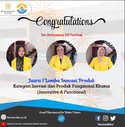 Dengan keberhasilan ini, Bhakti Kencana University kembali menunjukkan bahwa mahasiswa dari berbagai jenjang pendidikan, termasuk D3 Farmasi, memiliki potensi besar dalam menghasilkan produk yang inovatif dan fungsional. Prestasi ini sekaligus mengangkat nama baik Fakultas Farmasi serta memperkuat citra BKU sebagai institusi pendidikan yang mendorong pengembangan inovasi dalam bidang kefarmasian.