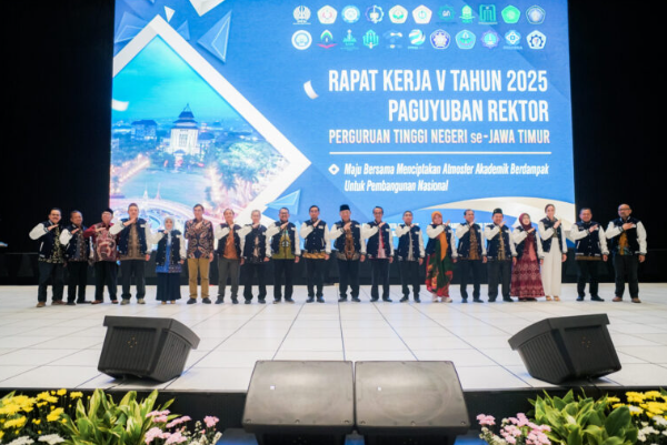 SEVIMA.COM – Universitas Brawijaya (UB) menjadi tuan rumah pada Rapat Kerja Perguruan Tinggi Negeri (PTN) se-Jawa Timur dengan tema “Maju Bersama Menciptakan Atmosfer Akademik Berdampak untuk Pembangunan Nasional”, Kamis, (11/12/2025), di Gedung Pandita Majapahit. Kegiatan ini dihadiri para rektor dan pimpinan PTN dari seluruh Jawa Timur, yang bertujuan memperkuat sinergi dan merumuskan arah kebijakan bersama dalam pengembangan pendidikan tinggi, riset, dan inovasi di wilayah Jawa Timur.