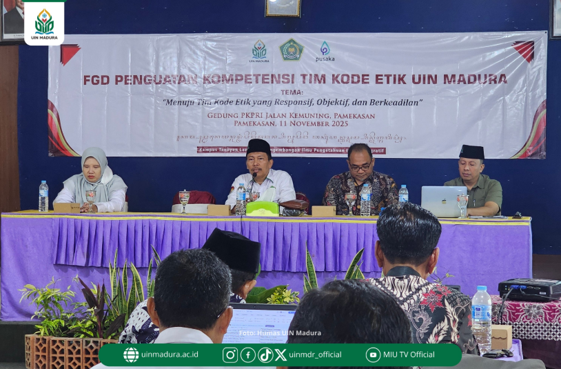 SEVIMA.COM – Universitas Islam Negeri (UIN) Madura menyelenggarakan Focus Group Discussion (FGD) Tim Kode Etik bertema “Memperkuat Tim Kode Etik yang Responsif, Objektif, dan Berkeadilan” pada Selasa (11/11/2025) di Aula PKPRI, Jl. Kemuning, Pamekasan. Kegiatan ini menjadi ruang strategis bagi universitas dalam memperkuat tata kelola etik dan memperjelas mekanisme penegakan kode etik pada tingkat akademik maupun kelembagaan.