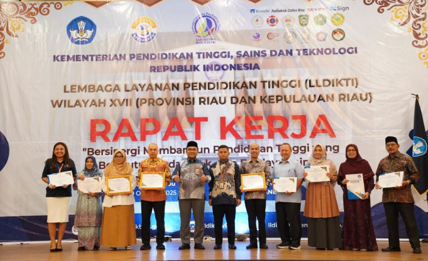 Piagam penghargaan diterima langsung oleh Rektor UIR Assoc. Prof. Dr. Admiral, S.H.,M.H dari Kepala LLDIKTI Wilayah XVII Dr. H. Nopriadi, S.K.M.,M.Kes dalam kegiatan Rapat Kerja Nasional (RAKER) LLDIKTI Wilayah XVII pada Rabu, (29/10/2025) di Grand Central Hotel Pekanbaru.