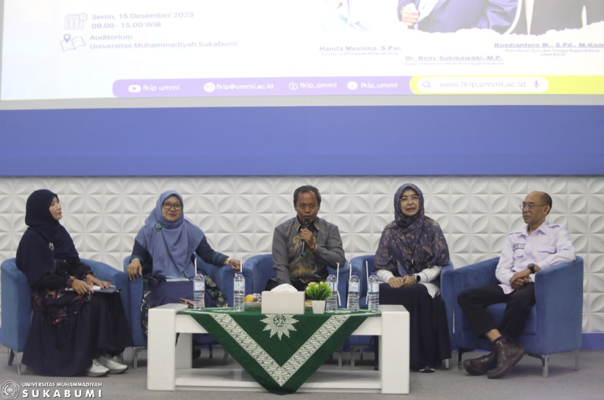 Seminar pendidikan ini menghadirkan empat pemateri dari berbagai institusi strategis di bidang pendidikan, yakni Kepala Balai Besar Guru dan Tenaga Kependidikan (BBGTK) Jawa Barat Dr. Sugito Adiwarsito, M.Pd.Or., perwakilan Direktorat Pendidikan Profesi Guru Kementerian Pendidikan Dasar dan Menengah Hanifa Muslima, S.Psi., perwakilan BBGTK Jawa Barat Kusdiantoro W, S.Pd., M.Kom., serta Rektor Universitas Muhammadiyah Sukabumi Dr. Reny Sukmawany, M.P.