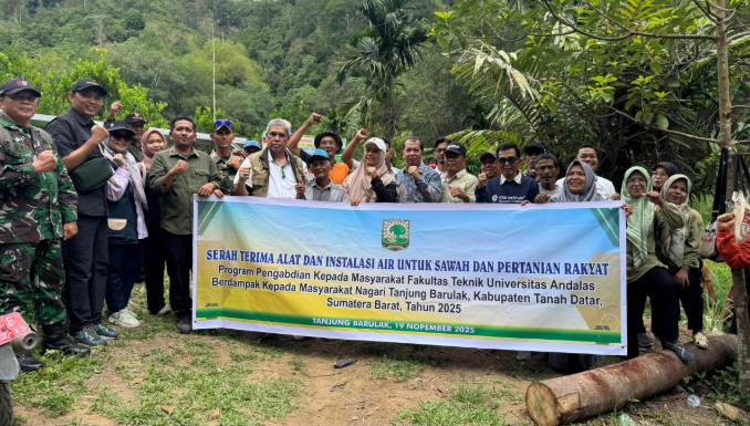 SEVIMA.COM – Fakultas Teknik Universitas Andalas (UNAND) menyerahkan prototipe Pompa Tenaga Surya tanpa baterai beserta instalasi air kepada masyarakat Nagari Tanjung Barulak, Kecamatan Tanjung Emas, Kabupaten Tanah Datar, sebagai bagian dari Program Pengabdian kepada Masyarakat tahun 2025.