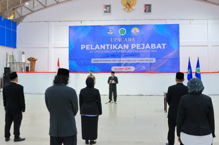 SEVIMA.COM – Universitas Samudra (Unsam) melaksanakan upacara pelantikan pejabat Wakil Dekan di lingkungan Universitas. Kegiatan berlangsung di Gedung Multiguna Unsam dan dipimpin oleh Wakil Rektor Bidang Akademik, Dr. Drs. Muhammad Natsir, S.H., M.H.