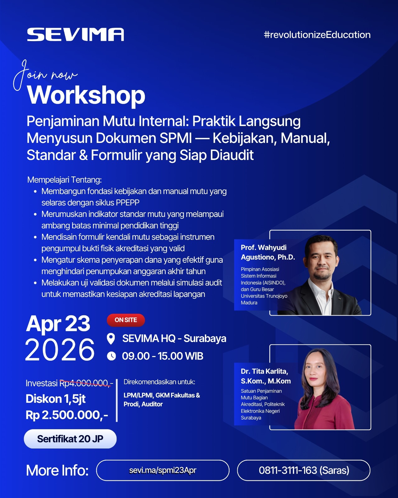 Pendaftaran: Segera amankan slot Anda melalui tautan berikut: sevi.ma/spmi23Apr