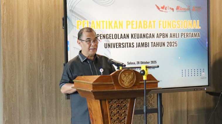 SEVIMA.COM – Universitas Jambi (UNJA) menggelar Pelantikan dan Serah Terima Jabatan (Sertijab) kepada Kustati, S.E., sebagai Pejabat Fungsional Analis Pengelolaan Keuangan APBN Ahli Pertama di lingkungan UNJA. Kegiatan berlangsung di lantai 2 Gedung UNIFAC, Kampus UNJA Mendalo, pada Selasa (28/10/2025).